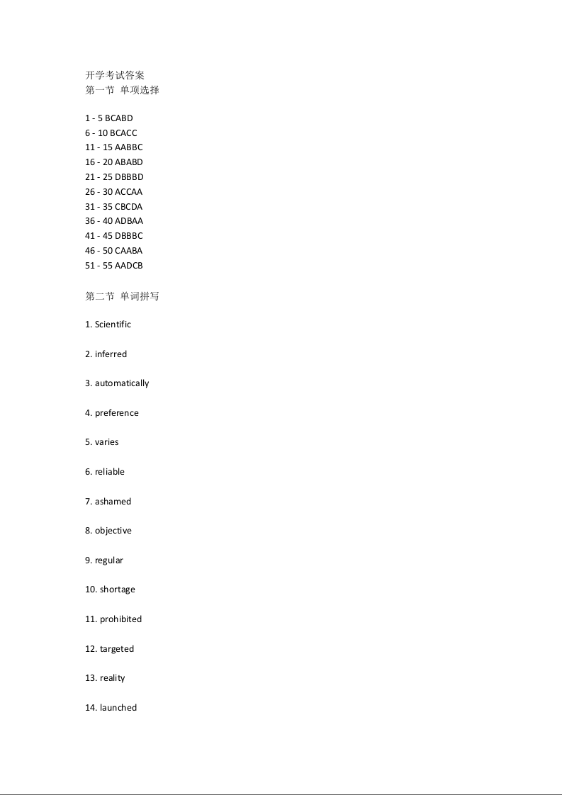 重庆市复旦中学2024-2025学年下学期高二开学定时作业英语答案
