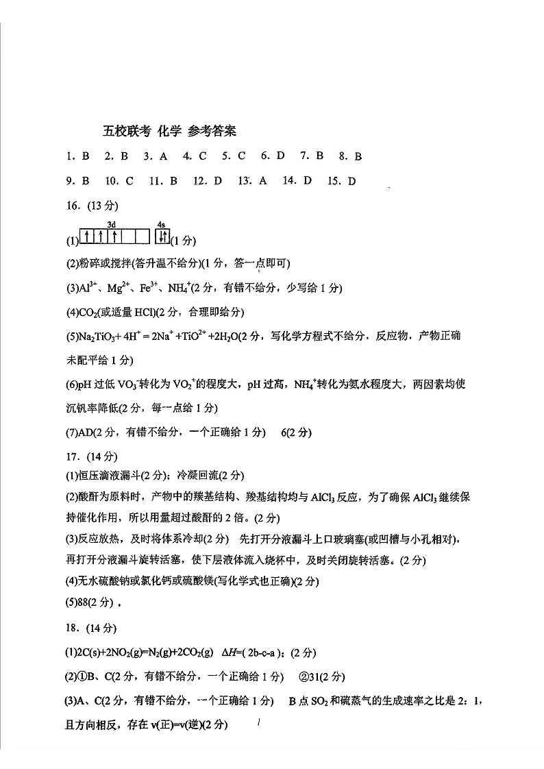 吉林省东北师大附中(五校联考)20224-2025学年上学期1月高三期末考试化学答案