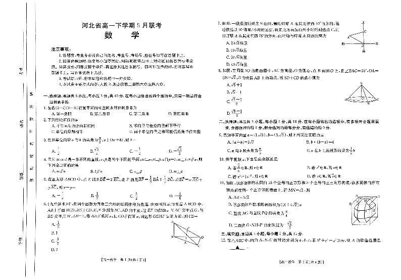 河北省保定市部分示范性高中2023-2024学年高一下学期5月期中考试数学