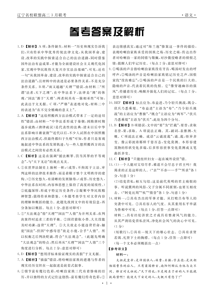 辽宁省名校联盟2024-2025学年下学期3月高二联合考试语文答案