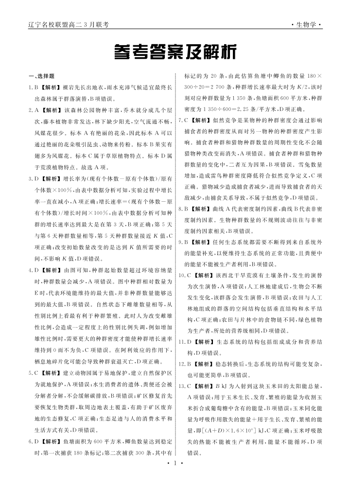 辽宁省名校联盟2024-2025学年下学期3月高二联合考试生物答案
