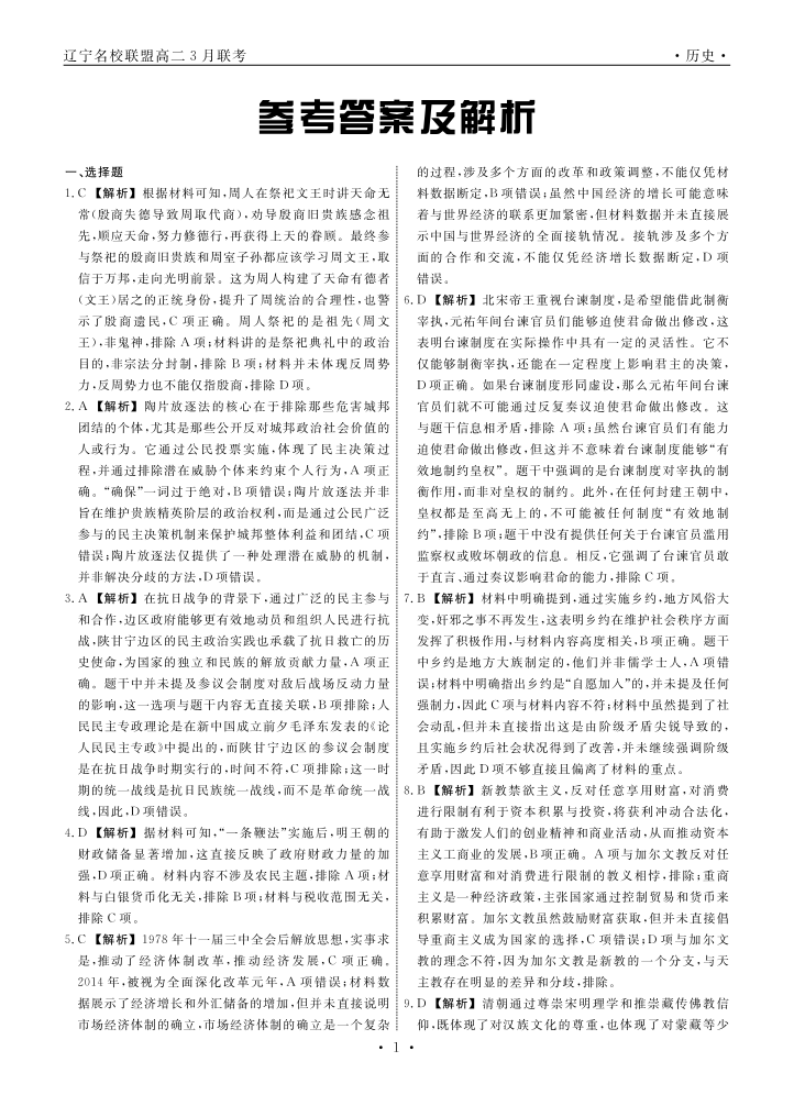 辽宁省名校联盟2024-2025学年下学期3月高二联合考试历史答案