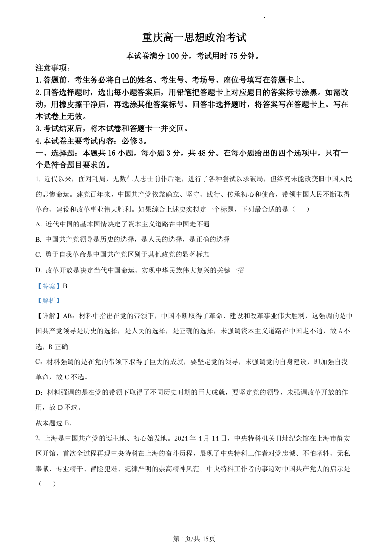 重庆市璧山来凤中学校等九校联考2023-2024学年高一下学期5月月考政治(精品解析版)