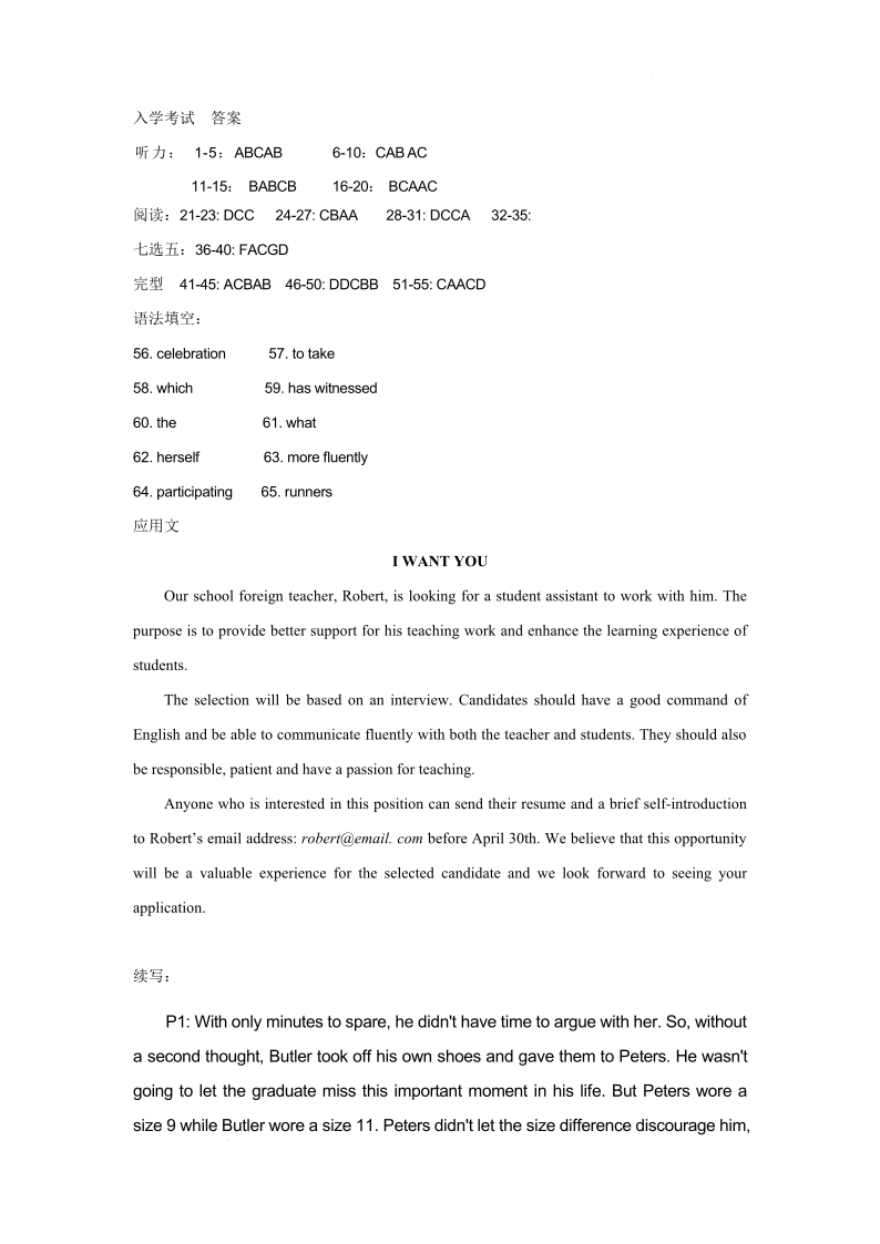四川省内江市第六中学2024-2025学年下学高二期入学考试英语答案