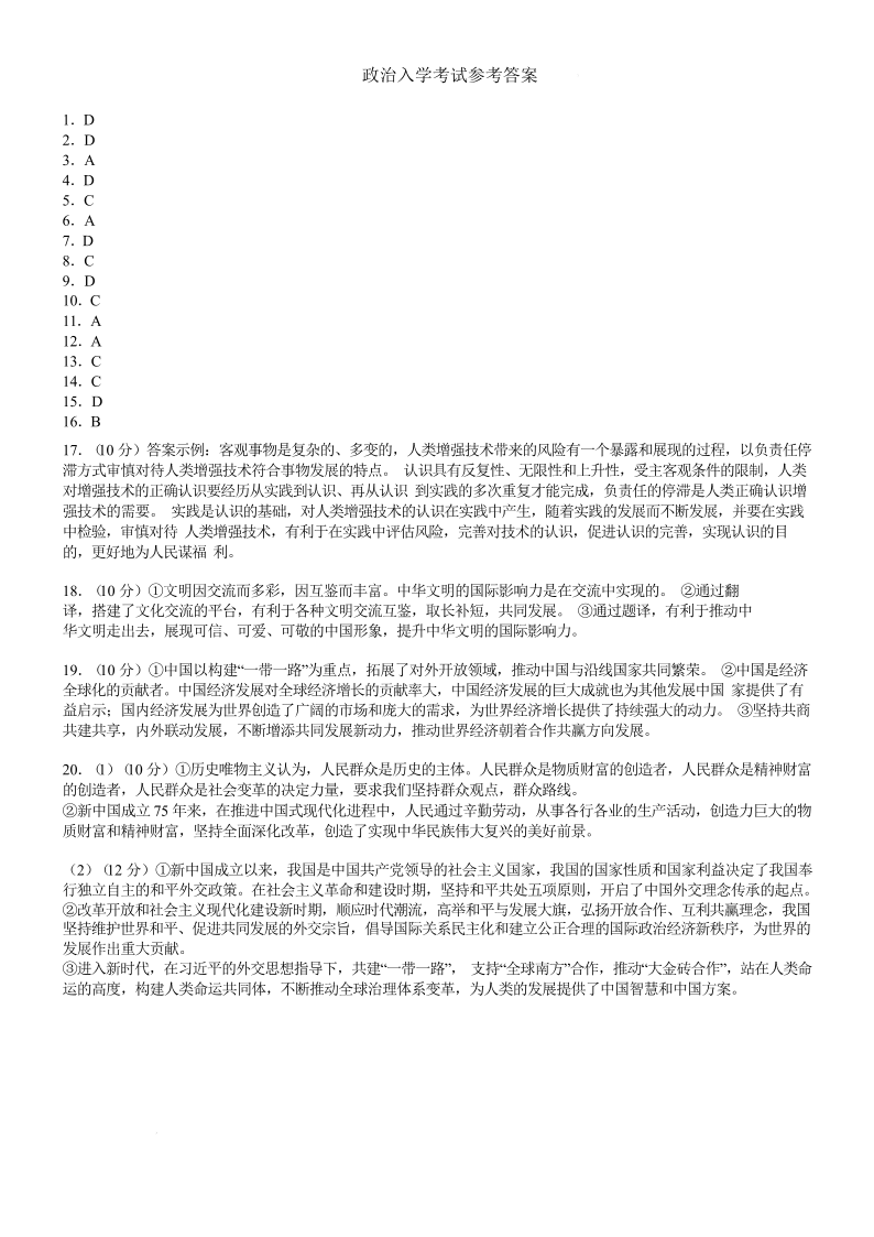 四川省内江市第六中学2024-2025学年下学高二期入学考试政治答案