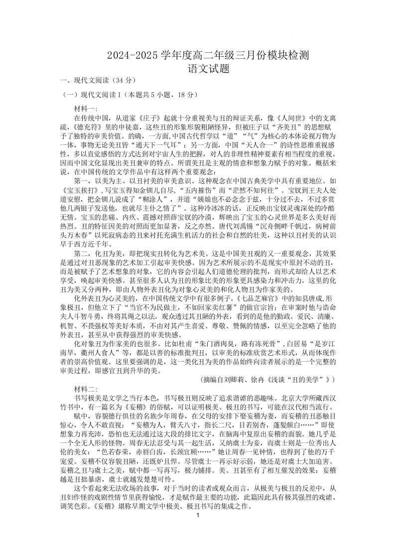 山东省济宁市实验中学2024-2025学年下学期3月高二月考语文
