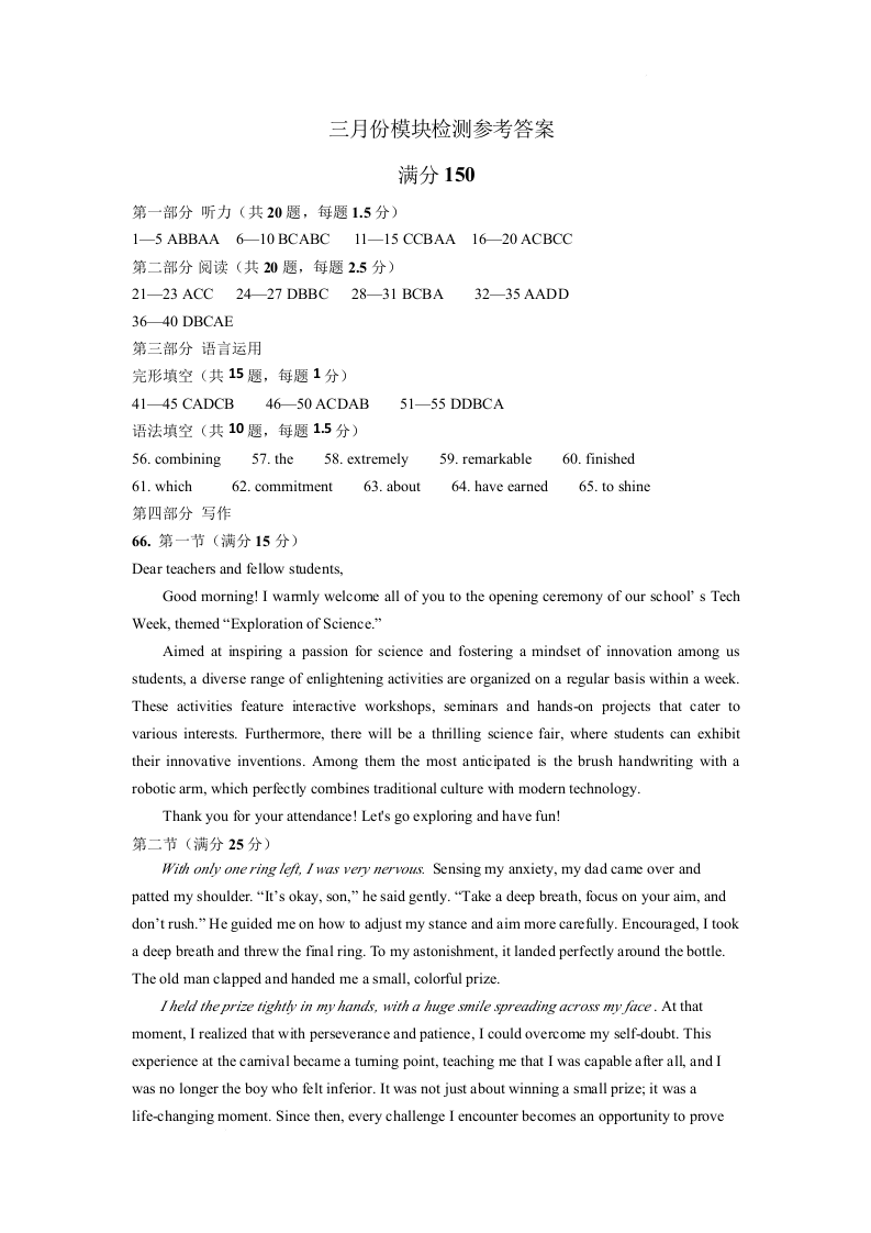 山东省济宁市实验中学2024-2025学年下学期3月高二月考英语答案