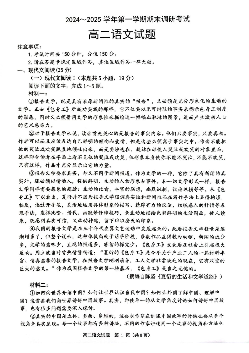 江苏省连云港市2024-2025学年上学期1月高二期末考试语文