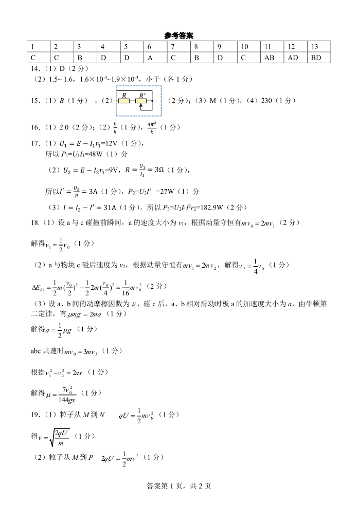 浙江省精诚联盟2024-2025学年下学期3月高二月考物理答案