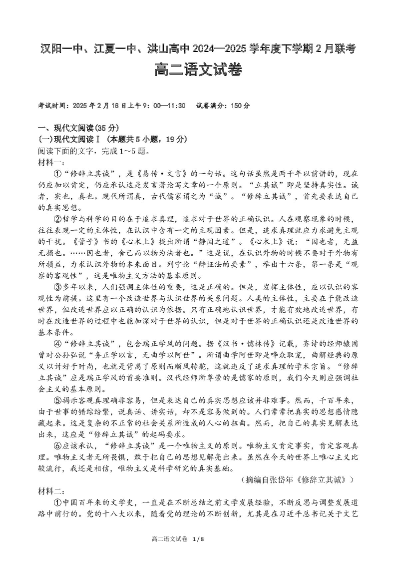 湖北省武汉市三校2024-2025学年下学期2高二月联考语文