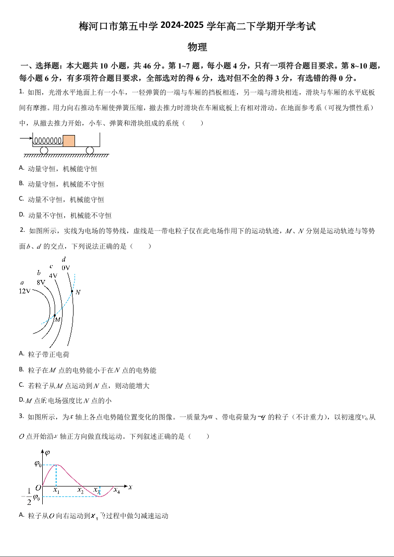 吉林省梅河口市第五中学2024-2025学年下学期高二开学考试物理+答案