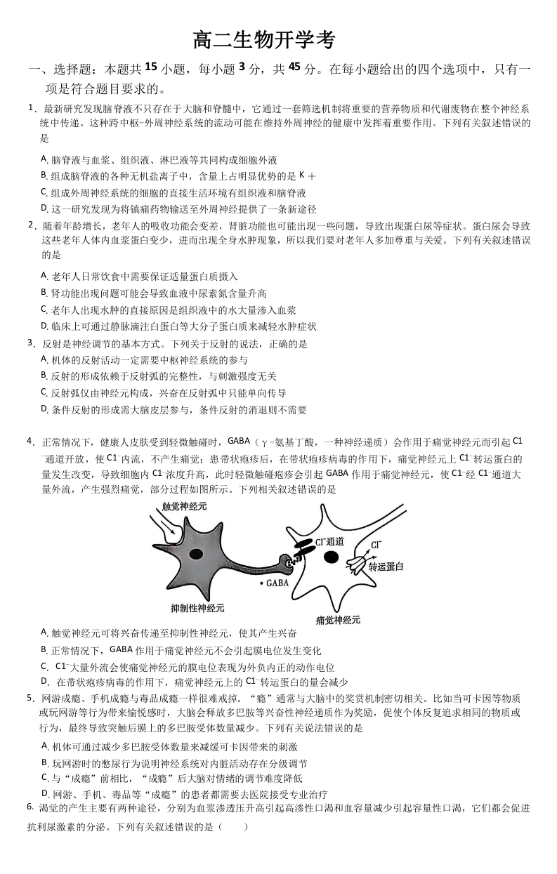 吉林省梅河口市第五中学2024-2025学年下学期高二开学考试生物+答案