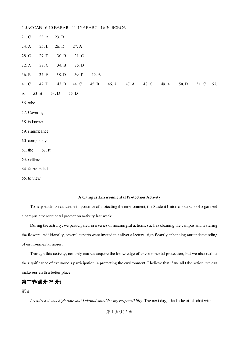 四川省南充市高级中学2024-2025学年下学期3月高二月考英语答案