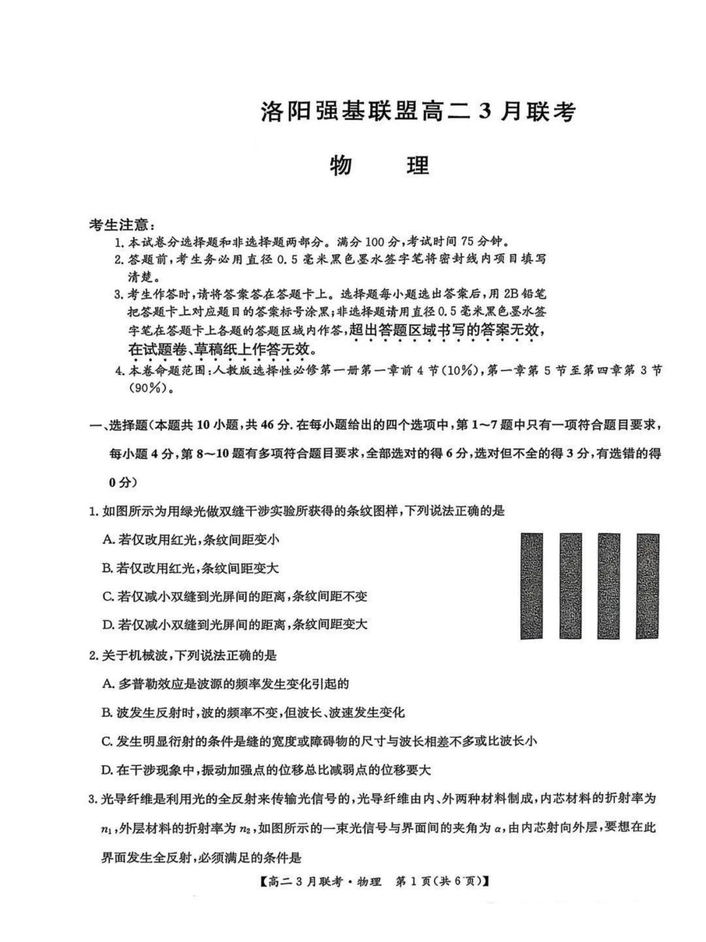 河南省洛阳市强基联盟2024-2025学年下学期3月高二月考物理+答案