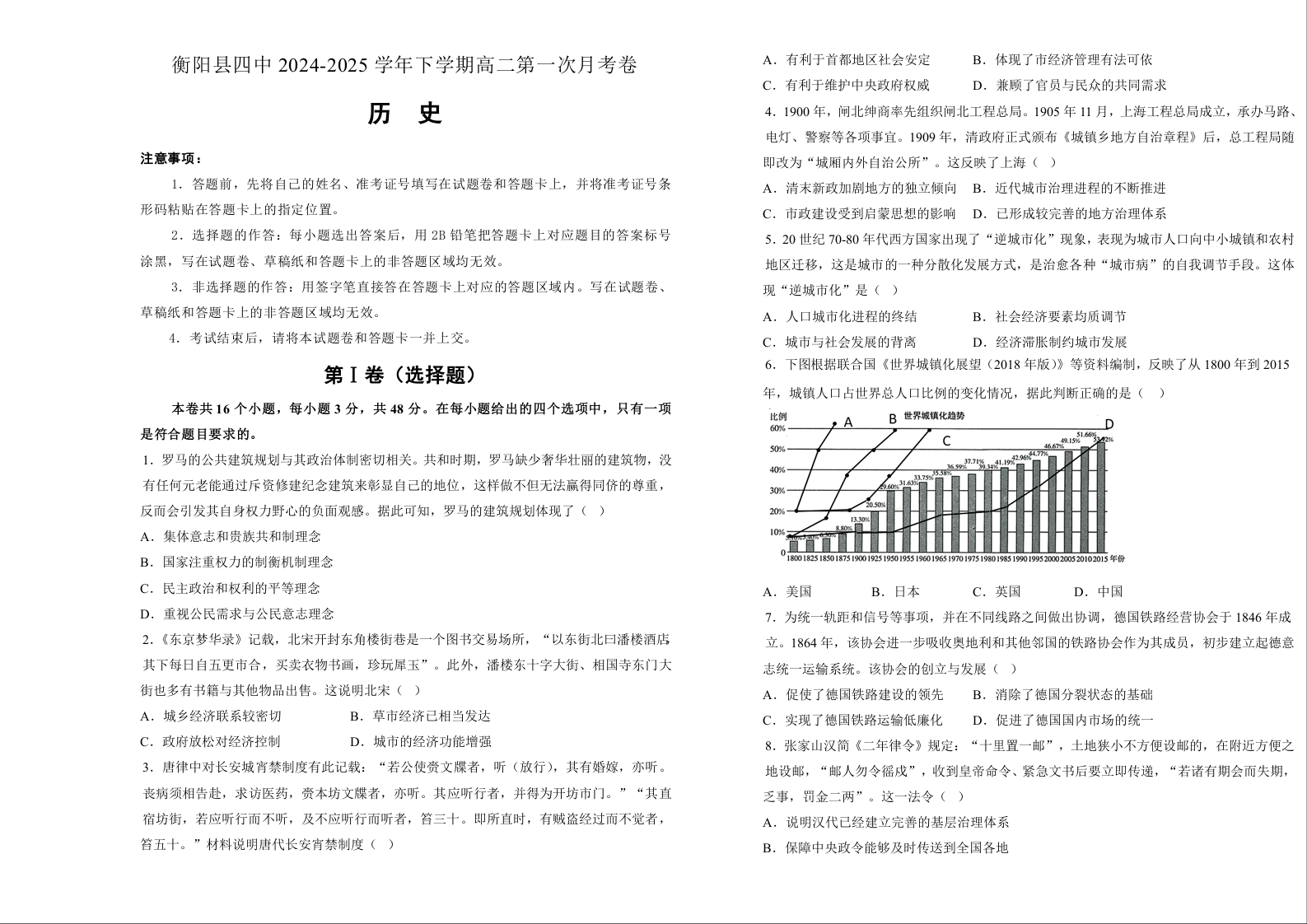 湖南省衡阳市衡阳四中2024-2025学年下学期3月高二第一次月考历史+答案