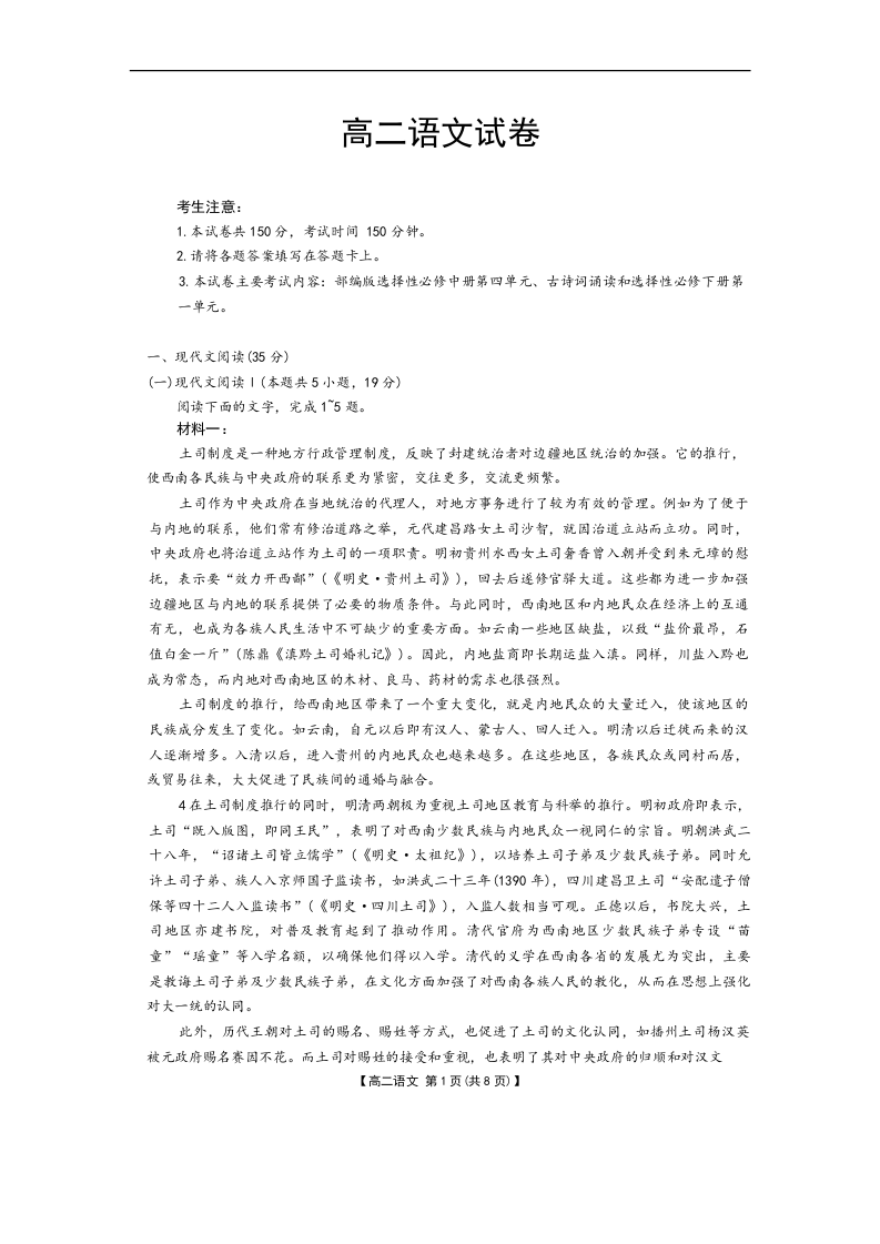 江西省部分学校2024-2025学年下学期3月高二联考语文+答案