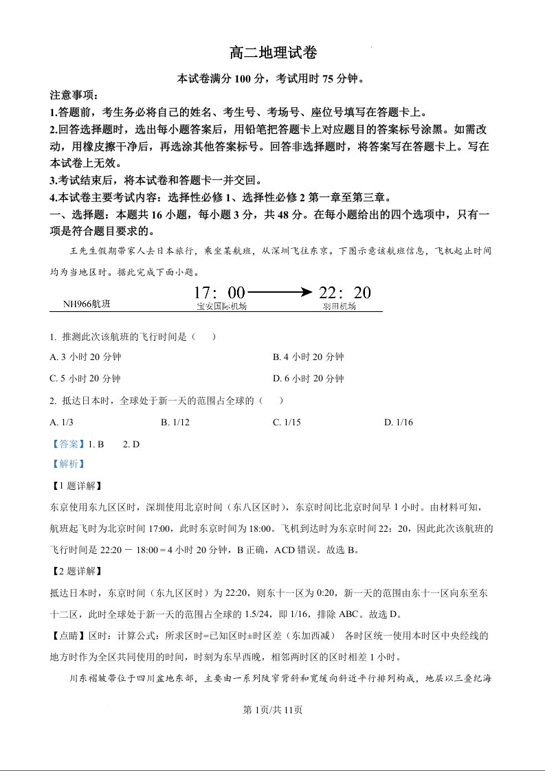 江西省部分学校2024-2025学年下学期3月高二联考地理(精品解析版)