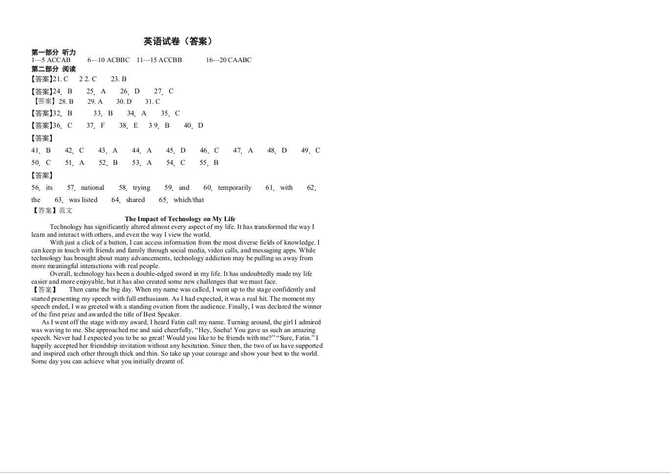 河北省张家口市第一中学2024-2025学年下学期3月高二月考英语答案