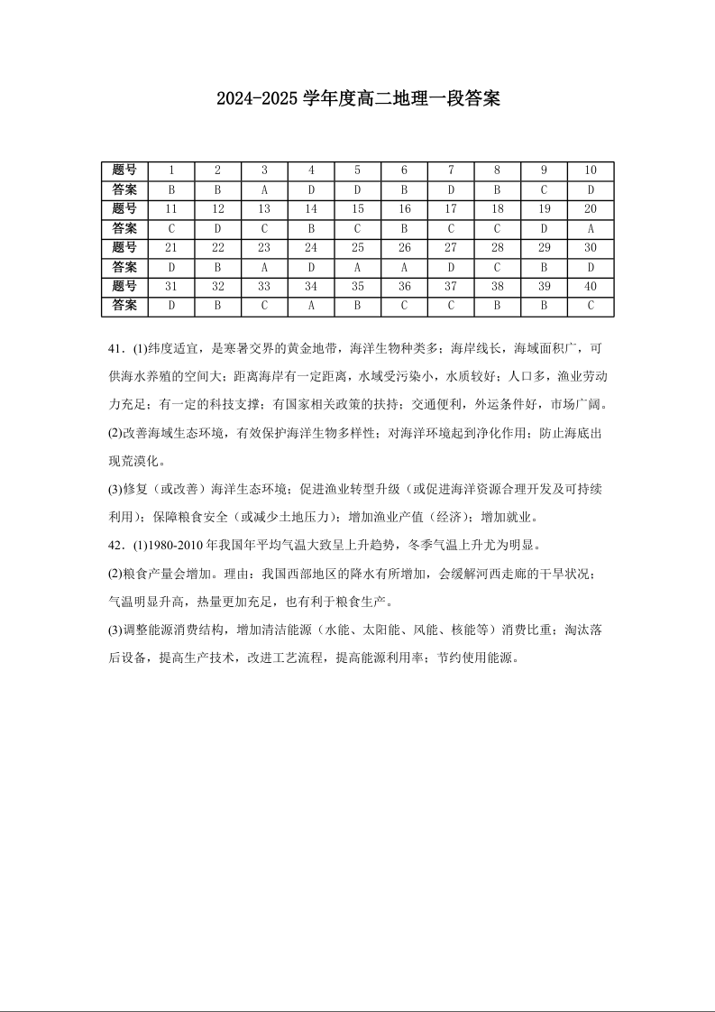 山东省济宁市微山县二中2024-2025学年下学期3月高二教学检测地理答案