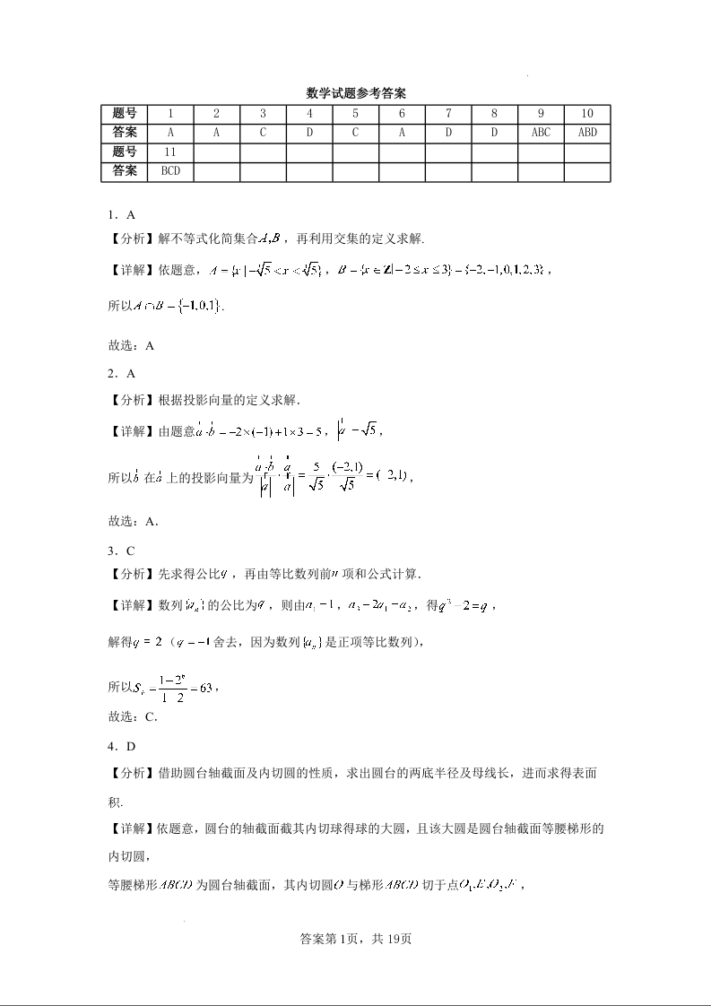 山东省师范大学附中2024-2025学年下学期高三一模考试数学答案