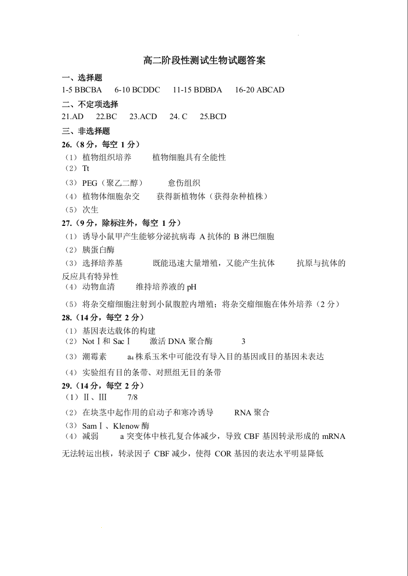 山东省济宁市第一中学2024-2025学年下学期3月高二月考生物答案
