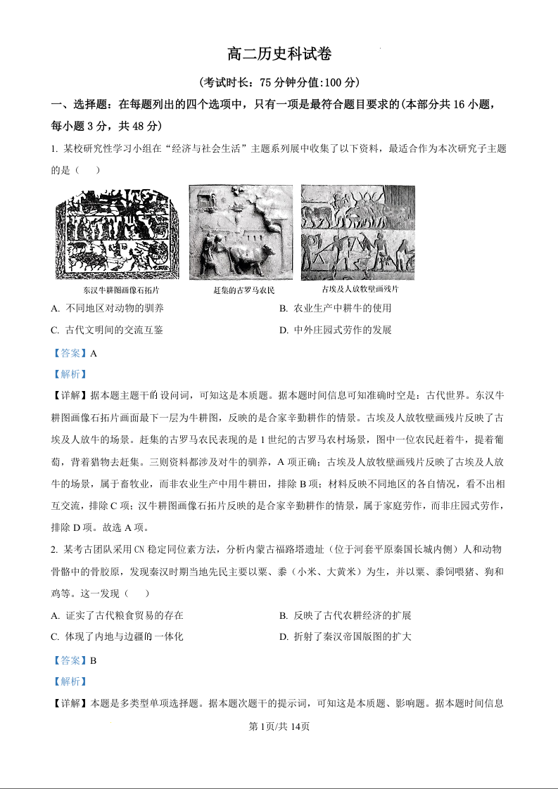 福建省三明第一中学2024-2025学年下学期3月高二月考历史(精品解析版)
