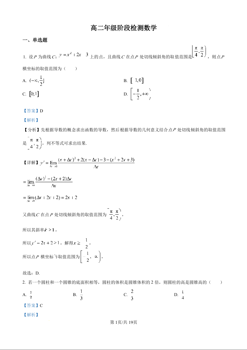江苏省南通市海安高级中学2024-2025学年下学期高二第一次月考数学(精品解析版)