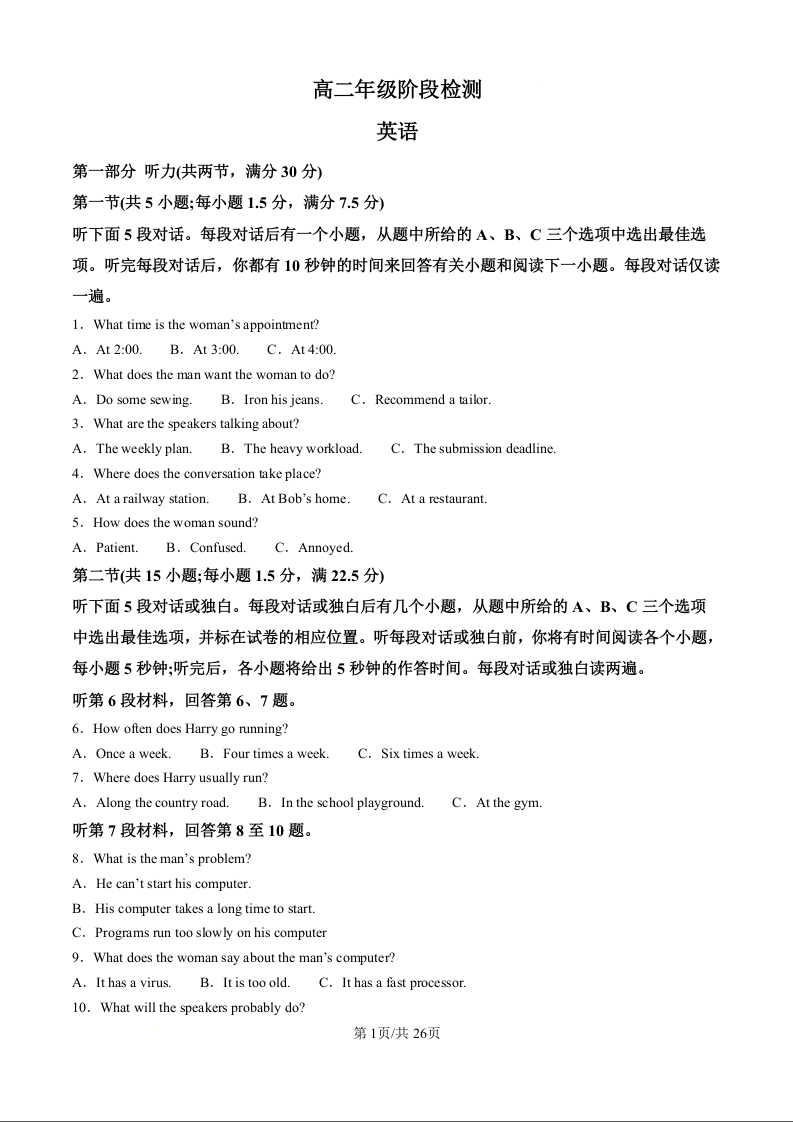 江苏省南通市海安高级中学2024-2025学年下学期高二第一次月考英语(精品解析版)