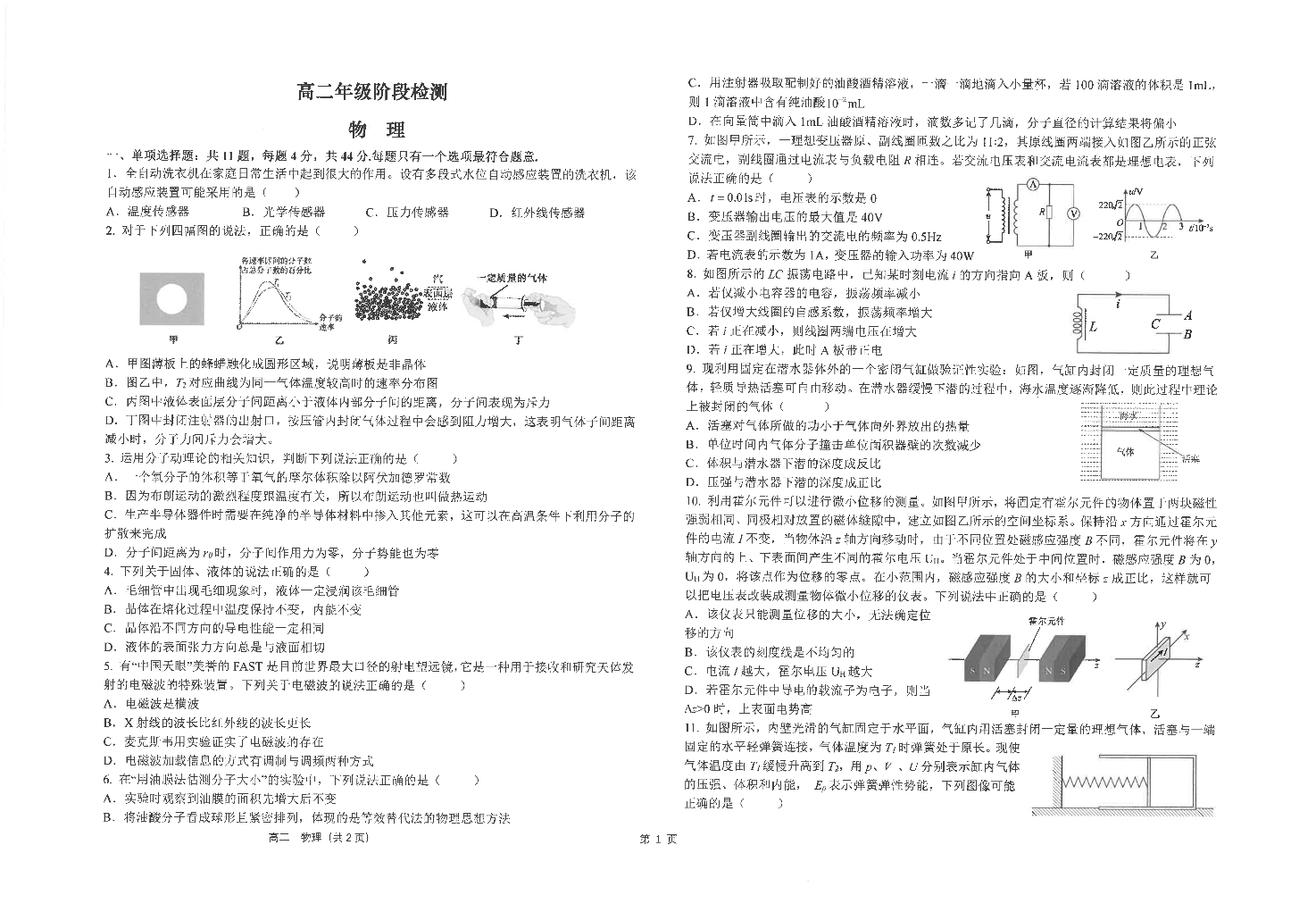 江苏省南通市海安高级中学2024-2025学年下学期高二第一次月考物理+答案