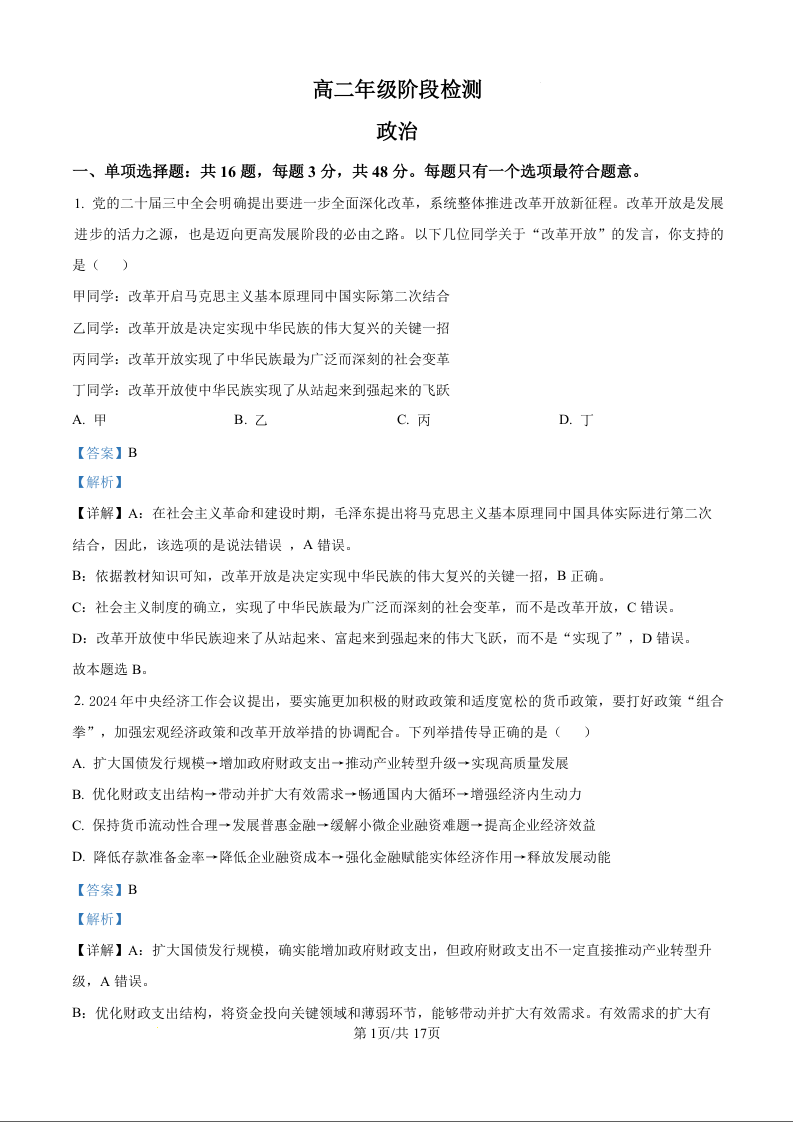江苏省南通市海安高级中学2024-2025学年下学期高二第一次月考政治(精品解析版)