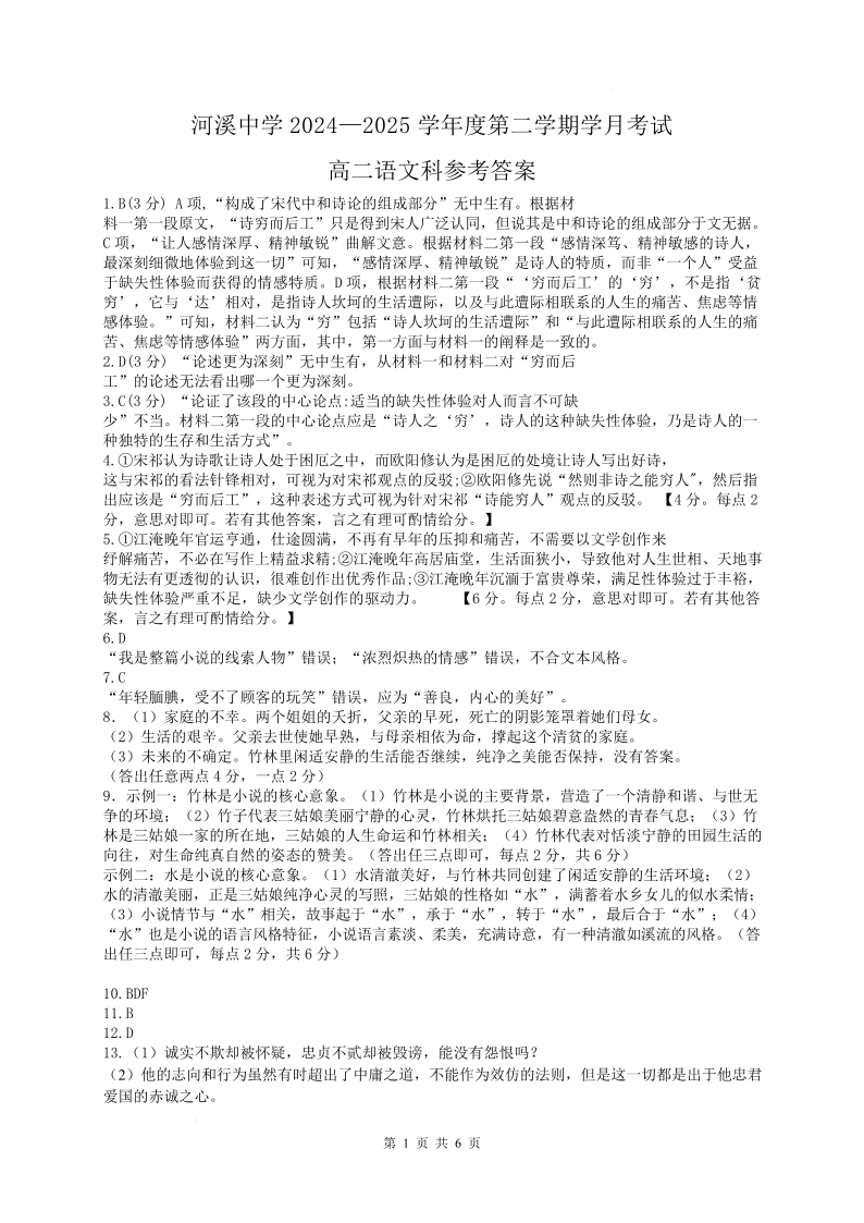 广东省汕头市潮阳区河溪中学2024-2025学年下学期3月高二月考语文答案
