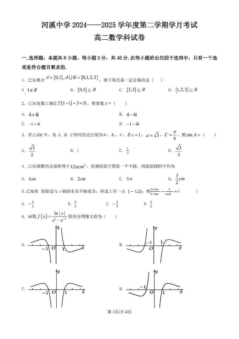 广东省汕头市潮阳区河溪中学2024-2025学年下学期3月高二月考数学