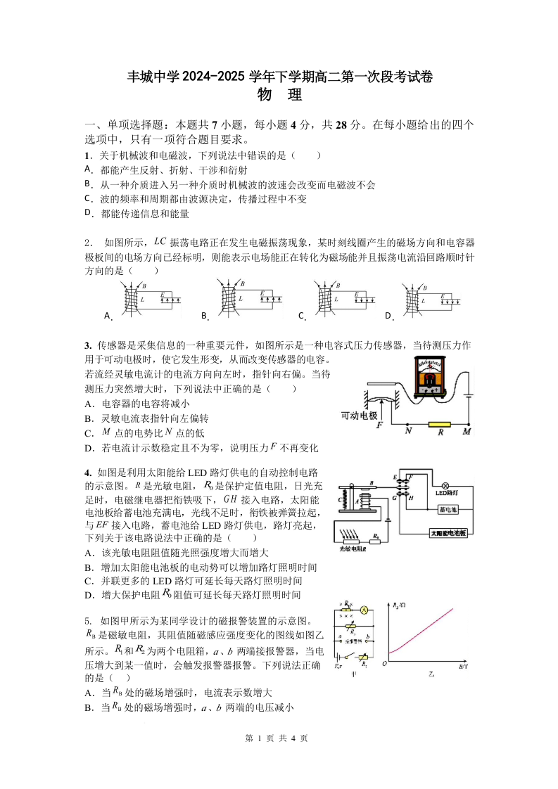 江西省丰城中学2024-2025学年下学期3月高二第一次段考物理