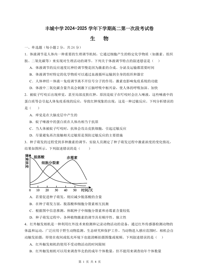 江西省丰城中学2024-2025学年下学期3月高二第一次段考生物+答案