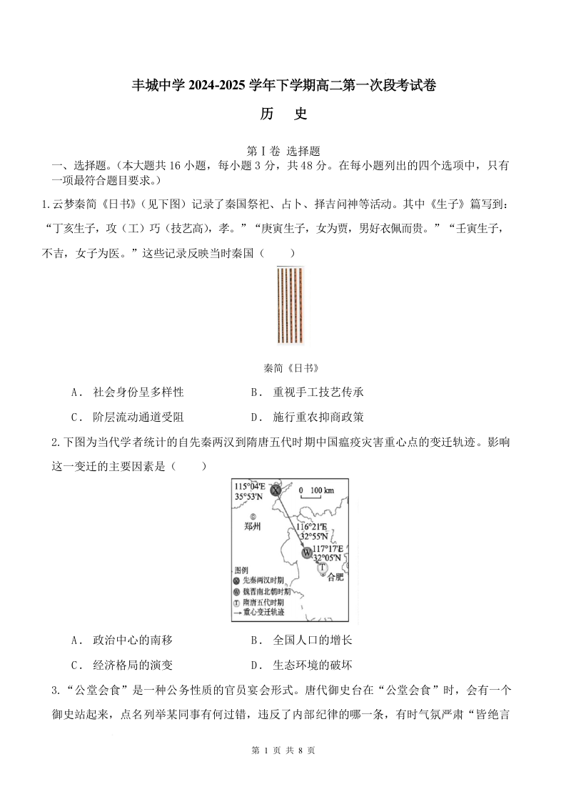 江西省丰城中学2024-2025学年下学期3月高二第一次段考历史+答案