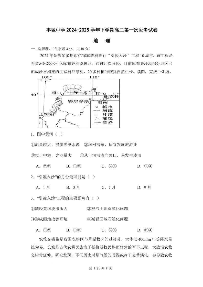 江西省丰城中学2024-2025学年下学期3月高二第一次段考地理+答案