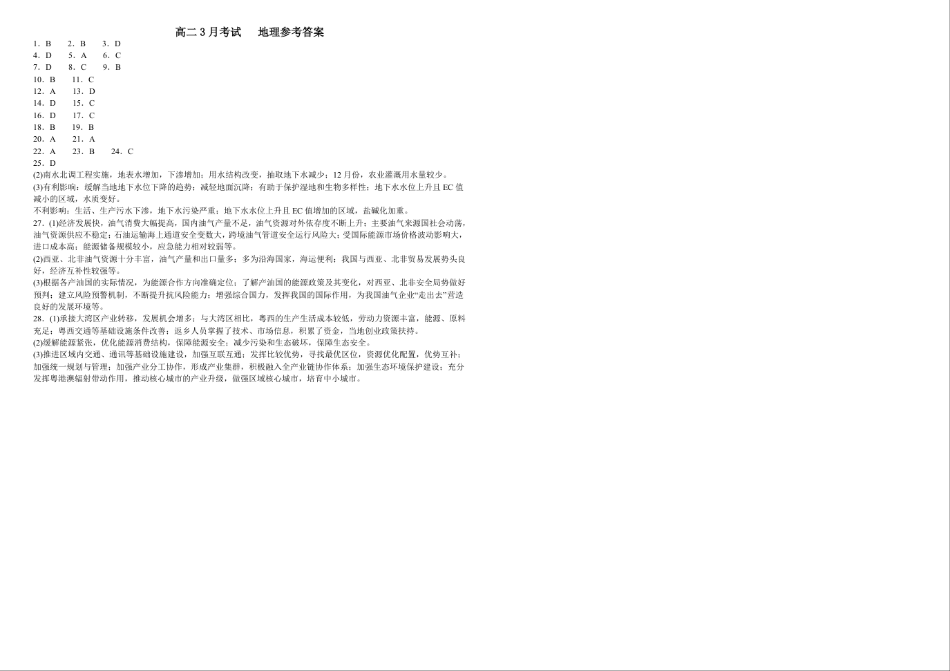 河北省邯郸市武安一中2024-2025学年下学期3月高二月考地理答案