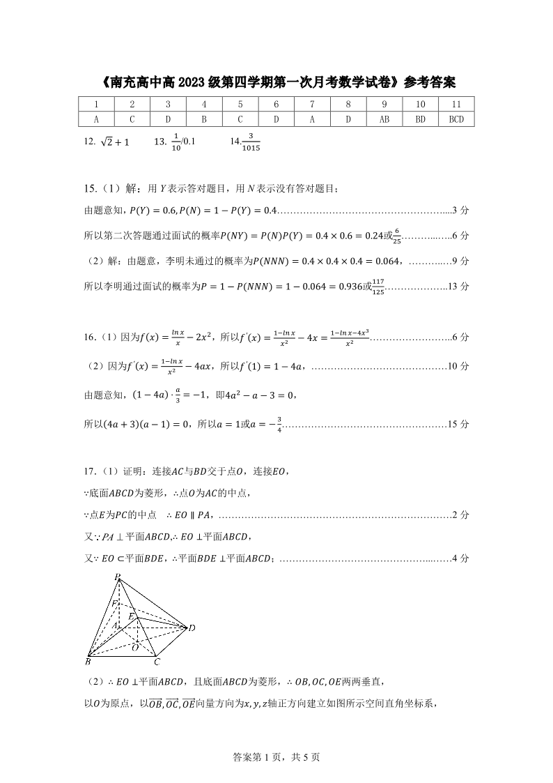 四川省南充市高级中学2024-2025学年下学期4高二月考数学答案