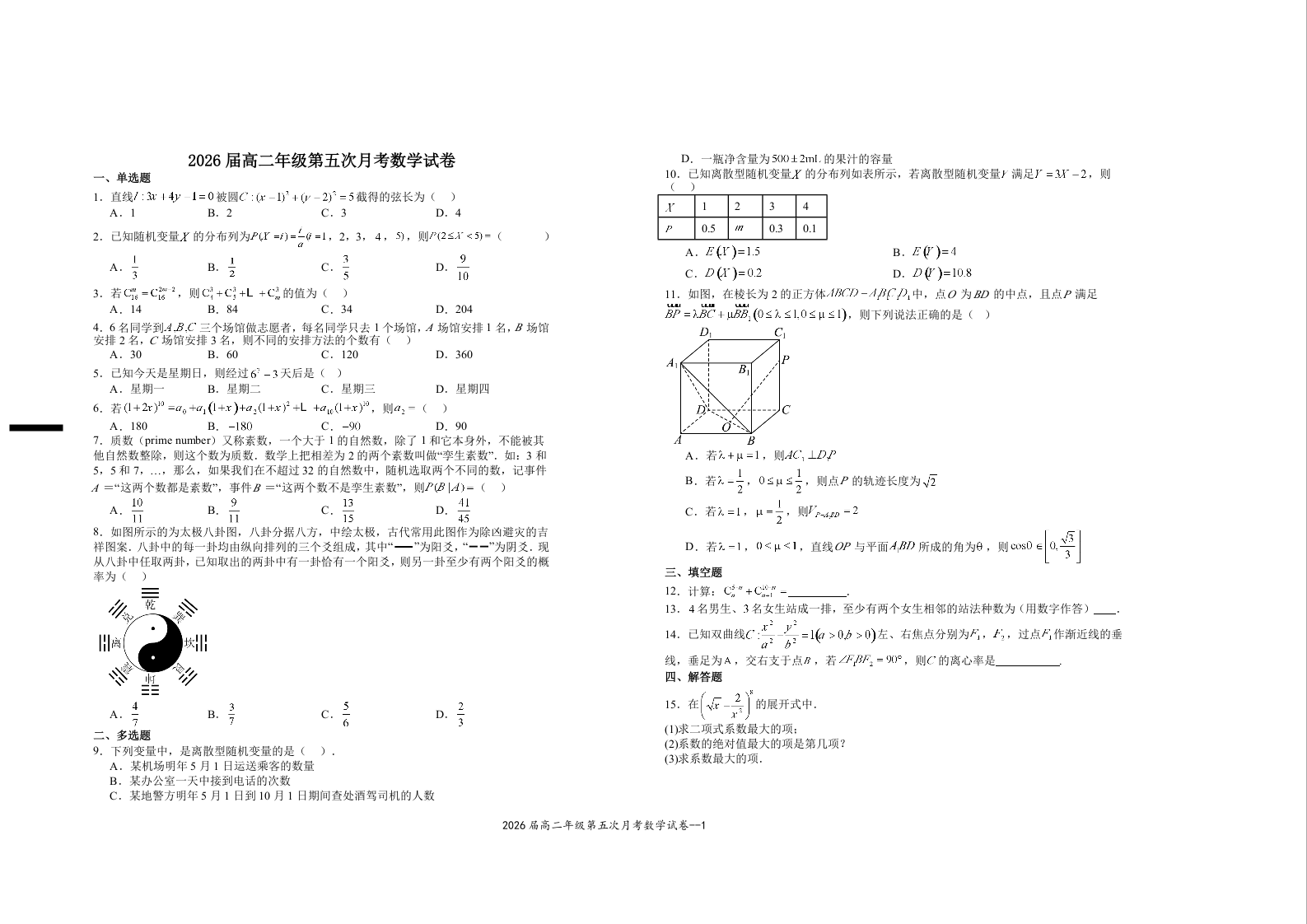 江西省宜春市上高二中2024-2025学年下学期3月高二第五次月考数学+答案