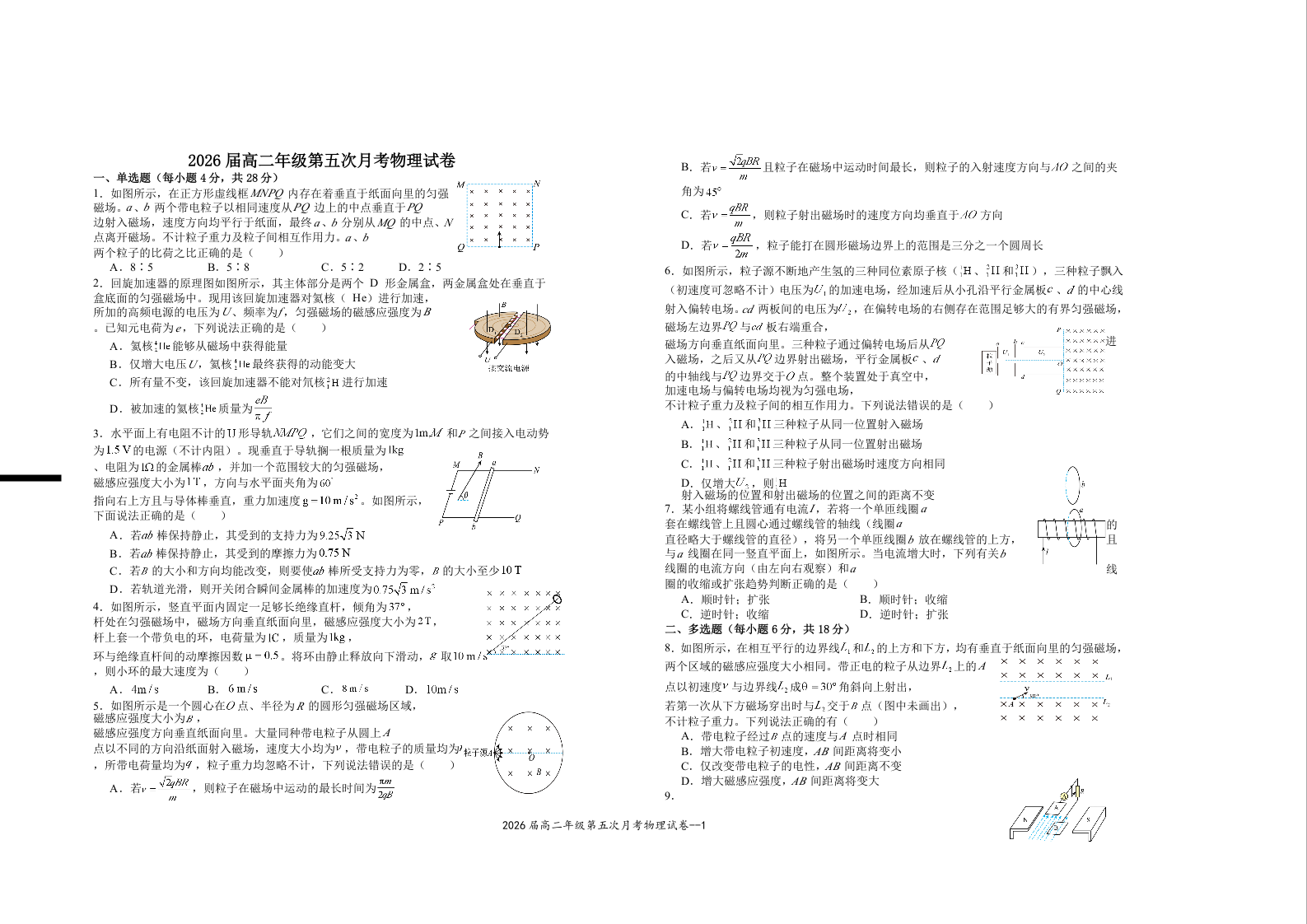 江西省宜春市上高二中2024-2025学年下学期3月高二第五次月考物理+答案