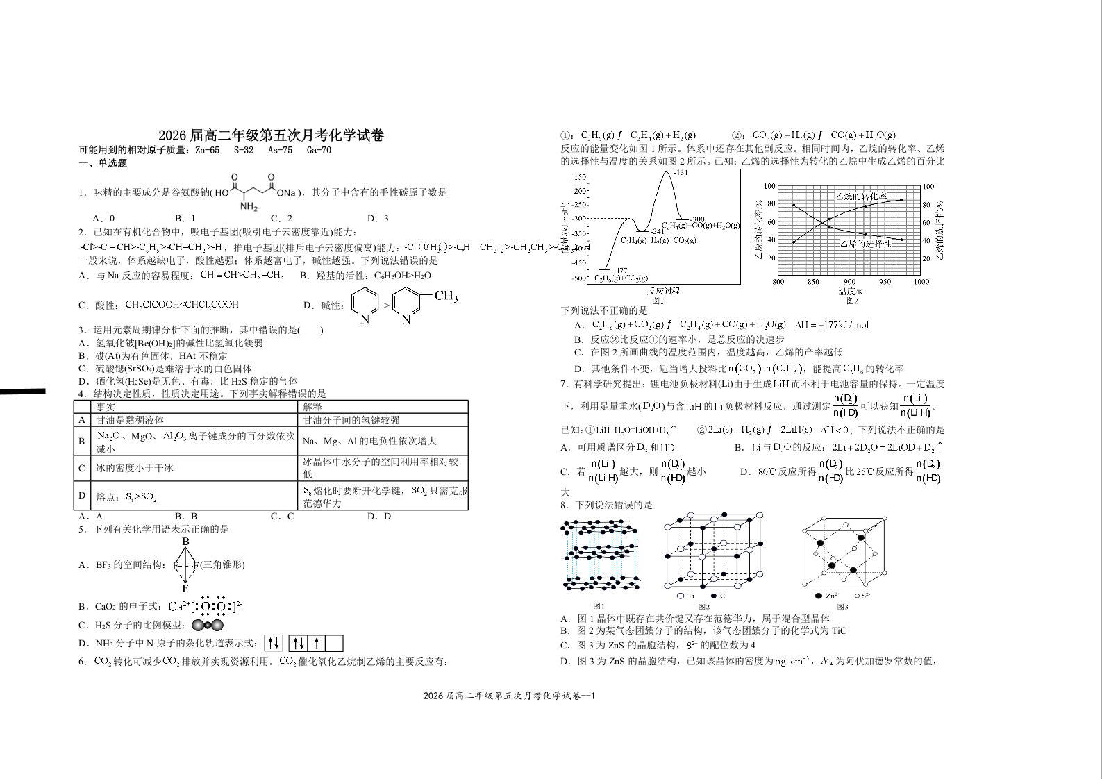 江西省宜春市上高二中2024-2025学年下学期3月高二第五次月考化学+答案