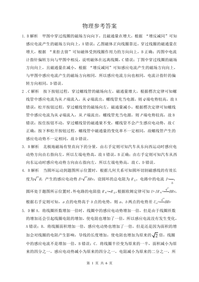 山东省德州市夏津一中2024-2025学年下学期高二第一次月考物理答案