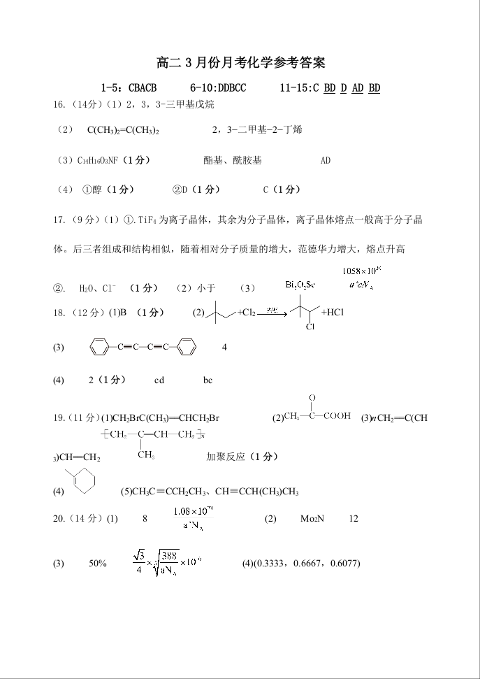 山东省德州市夏津一中2024-2025学年下学期高二第一次月考化学答案
