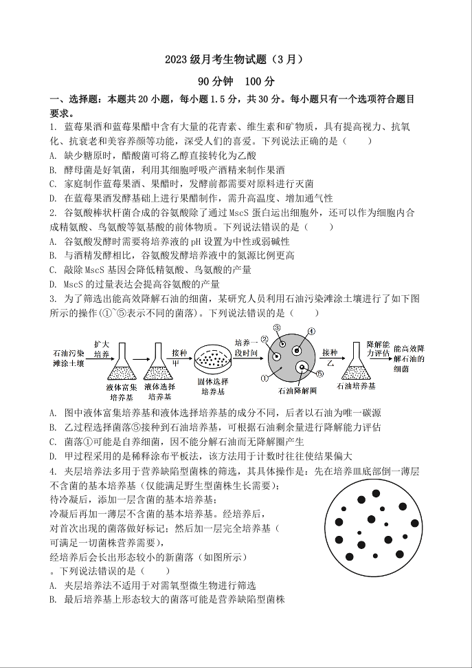 山东省德州市夏津一中2024-2025学年下学期高二第一次月考生物