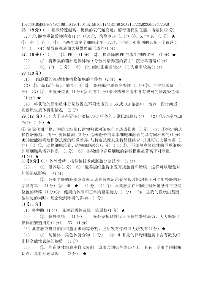 山东省德州市夏津一中2024-2025学年下学期高二第一次月考生物答案