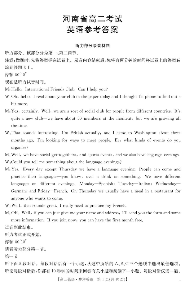 河南省安鹤新联盟2024-2025学年下学期3月高二联考英语答案