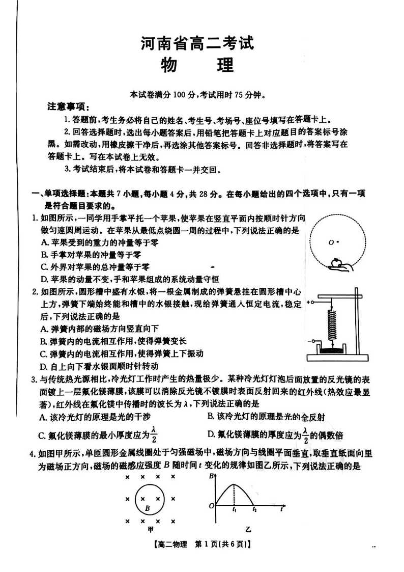 河南省安鹤新联盟2024-2025学年下学期3月高二联考物理