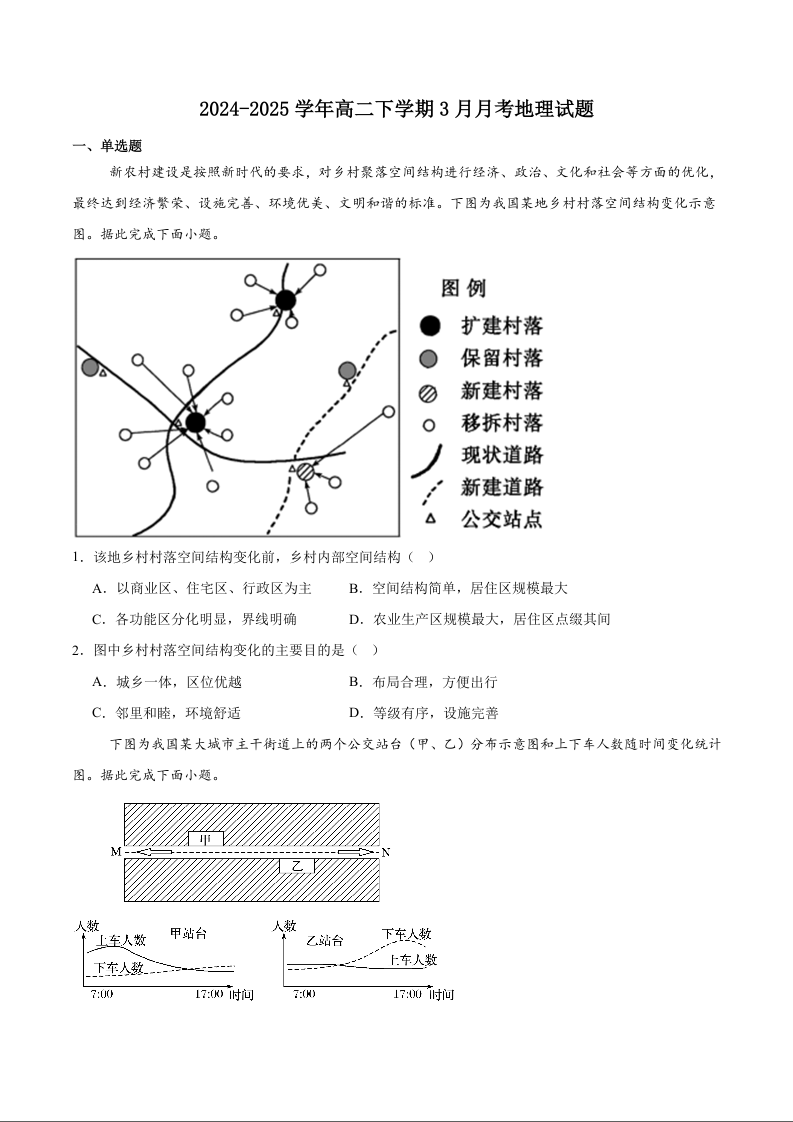 江西省赣州市大余县部分学校2024-2025学年下学期3月高二月考地理+答案