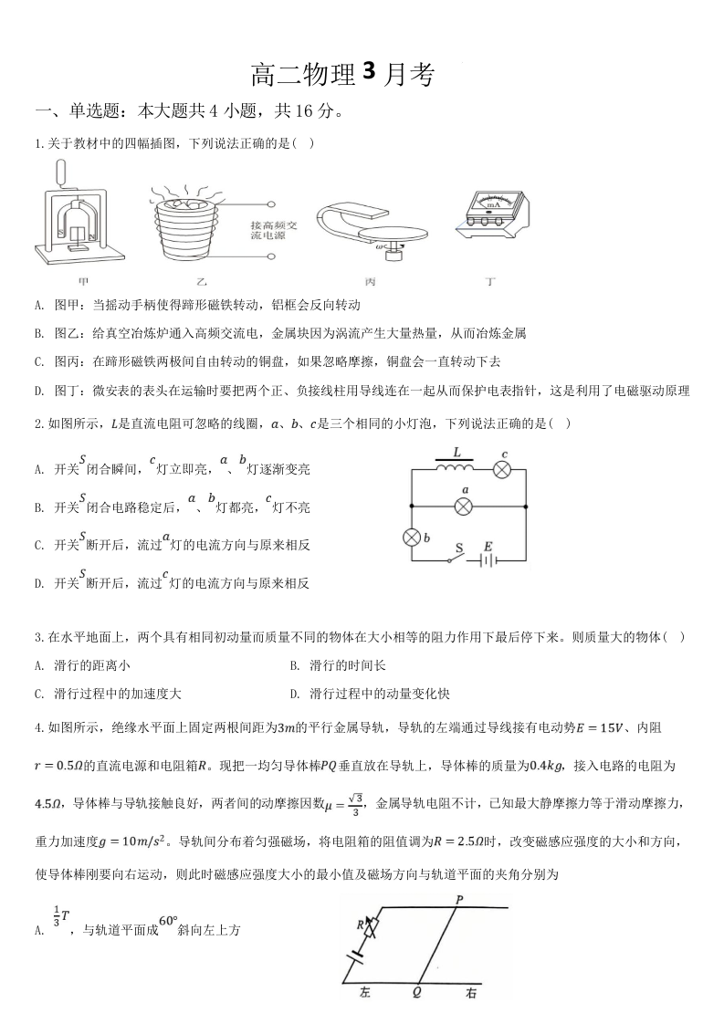 吉林省梅河口市五中2024-2025学年下学期3月高二月考物理+答案