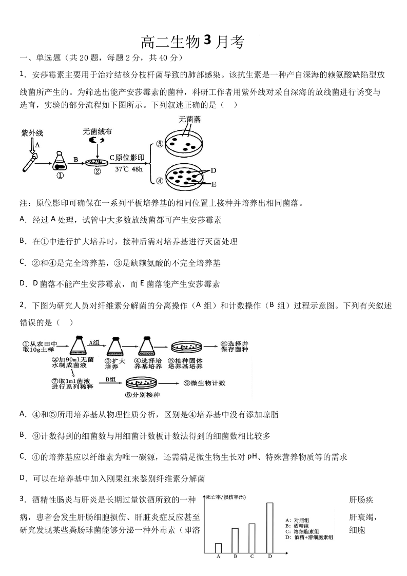 吉林省梅河口市五中2024-2025学年下学期3月高二月考生物+答案